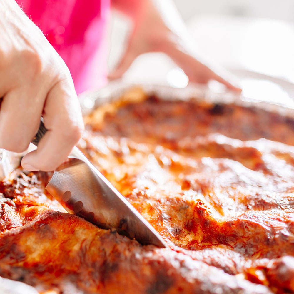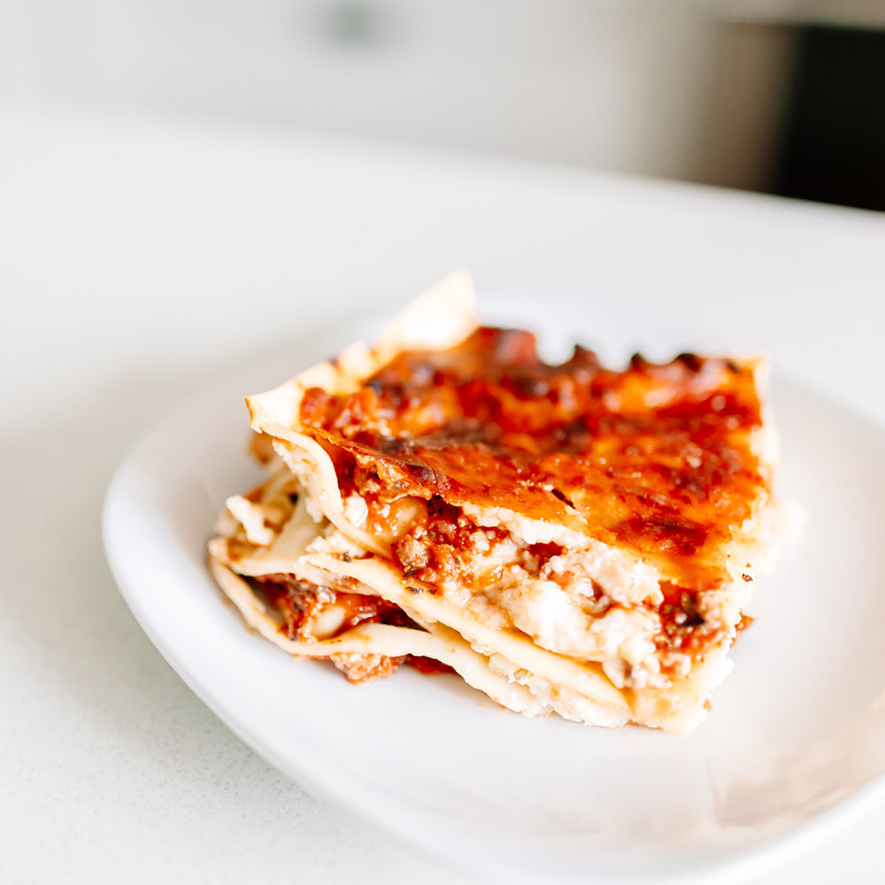 A big warm comforting hug within layers of fresh pasta, flavorful Bolognese sauce and cottage cheese, topped with the perfect amount of mozzarella. This classic Italian dish is guaranteed to gather the whole family.